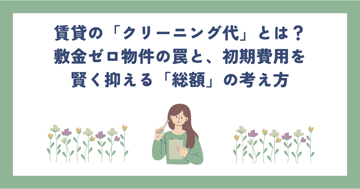 SUUMOやHOME’Sでお部屋探しをしていて、「敷金・礼金ゼロ!」という魅力的な物件を見つけたのに、初期費用の見積もりを見たら「クリーニング代(退去時清掃費):40,000円」という謎の項目が追加されていてガッカリした……そんな経験はありませんか?